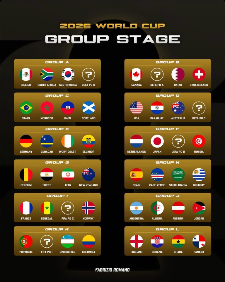 A 2026-os labdarúgó-világbajnokság csoportjai: