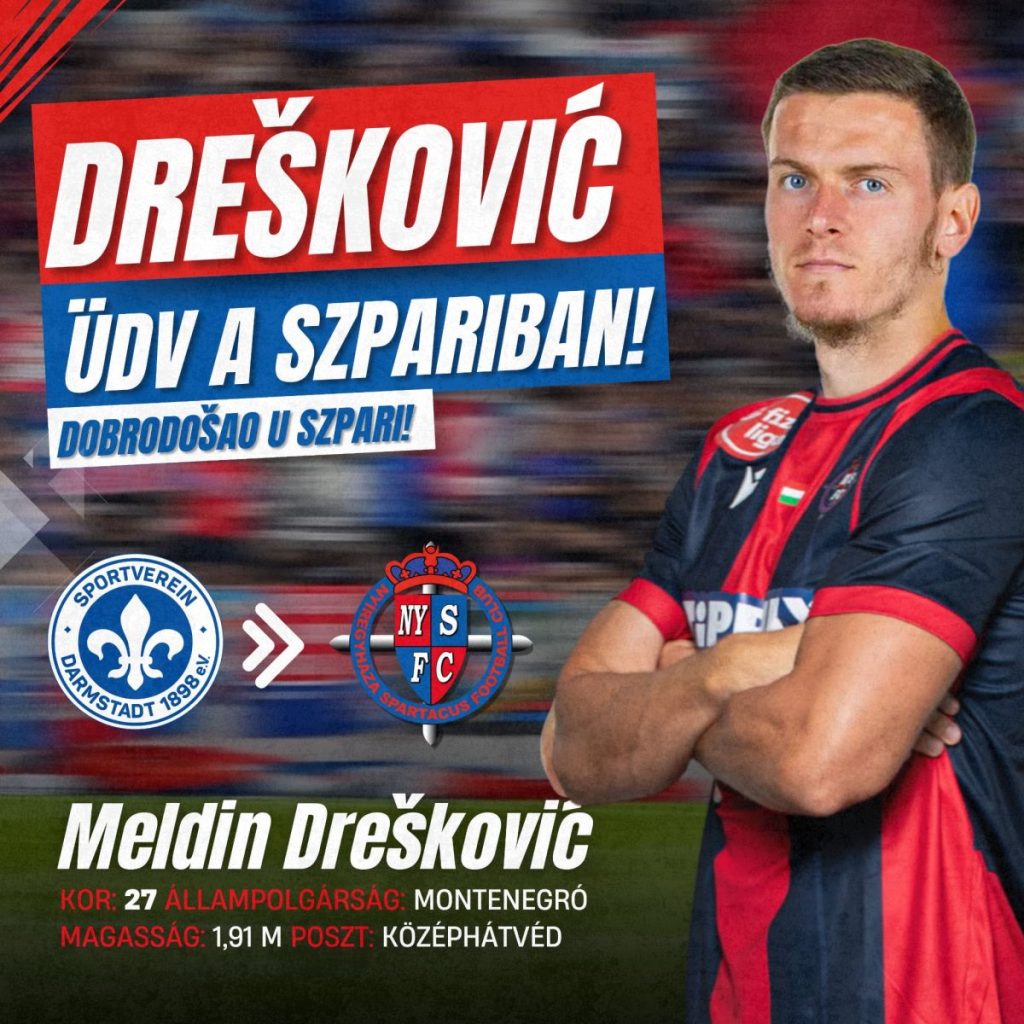 Montenegrói válogatott védő igazol Nyíregyházára: a Szpari mindenben megállapodott Meldin Dreskoviccsal és klubjával, a német Darmstadttal, így a korábbi debreceni játékos kölcsönben érkezik a nyárig.