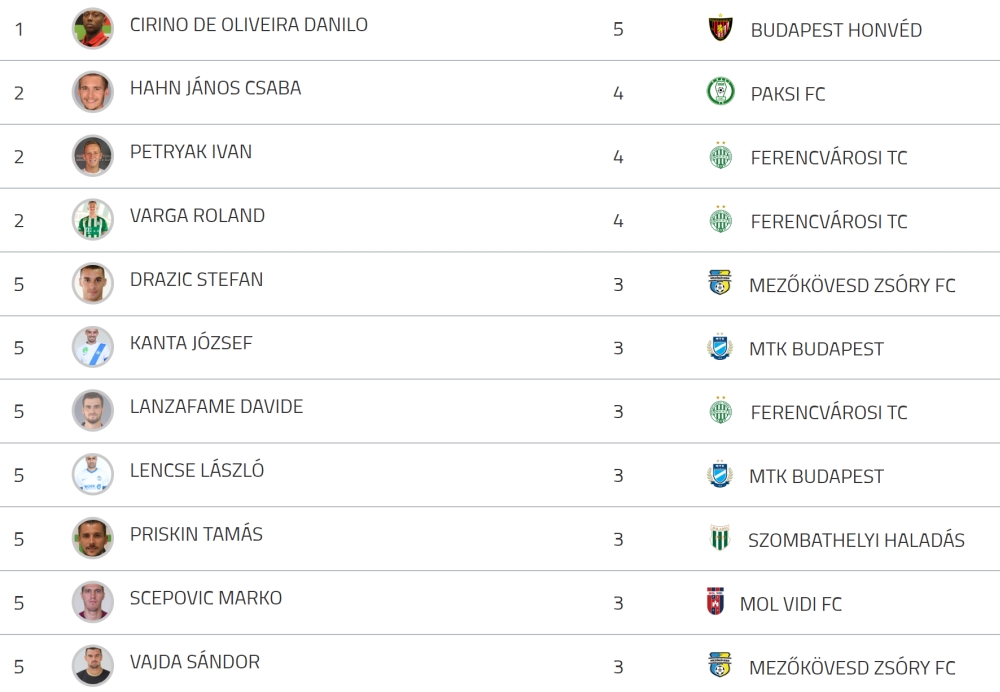 A Mátészalkán született, de ukrán állampolgársággal bíró Vajda Sándor zárja a TOP 10-et, a Vidi elleni utolsó utáni perces szabadrúgás-góljának köszönhetően. Őt nyilván magyarként is vettük számításba, ezzel kisebb fölényben is vannak a hazai futballisták a góllövőlistán, igaz, az élen a brazil Danilo (Honvéd) áll, megelőzve két magyart, Hahnt (Paks) és Varga Rolandot (FTC), illetve az ukrán Petrjakot (FTC).