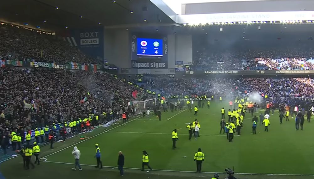 A Celtic szurkolói a Skót Kupa negyeddöntőjében aratott, büntetőkkel kiharcolt 4–2-es győzelem után, ünneplés közben először a pályára rohantak, majd a Rangers drukkerei is csatlakoztak az incidenshez. A rendőrök és a rendezők sorfalat álltak a két szurkolótábor közé, akik eközben pirotechnikai eszközöket is a pályára dobáltak.