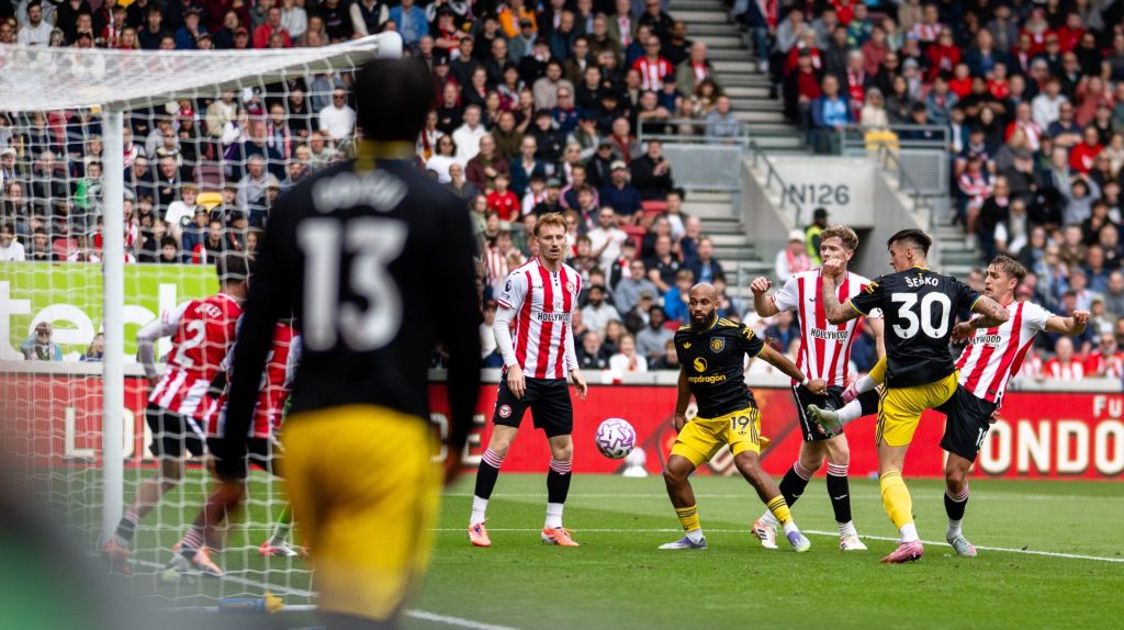 A brazil Igor Thiago duplájával a hazaiak a huszadik percben már két góllal vezettek, de Benjamin Sesko hat perccel később szépített. A szlovén légiós gólja azonban kevés volt a pontszerzéshez, mivel csapattársa, Bruno Fernandes a 76. percben tizenegyest hibázott, ráadásul a hosszabbításban Mathias Jensen is betalált a hazaiaknál.
