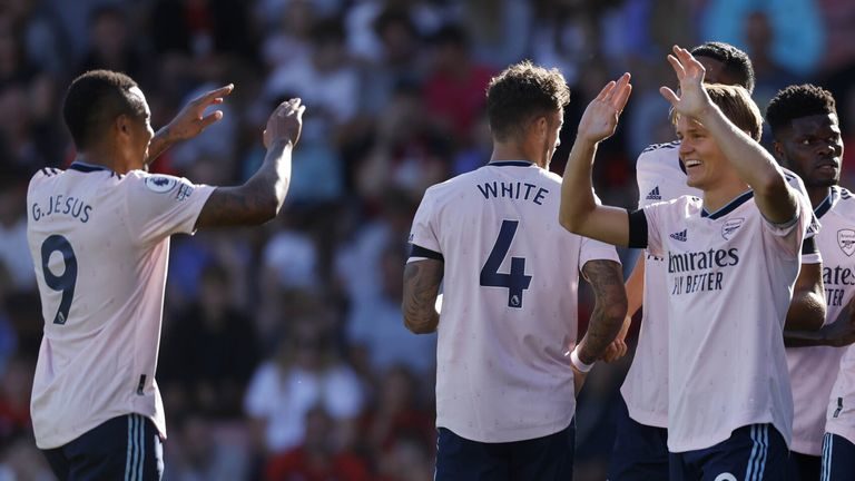 Bornemouth-Arsenal 0-3 (Odegaard 5., 11., Saliba 54.)