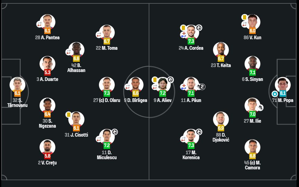 A 91. percben Mihai Popa ívelt előre egy hosszú labdát, amely Duartéhoz, a román bajnokcsapat új védőjéhez került. A portugál játékos Ngezanának akarta továbbítani a labdát, ám pontatlanul passzolt, amit Biliboc könnyedén megszerzett, majd mattolta Târnovanut, végképp lezárva a találkozót.