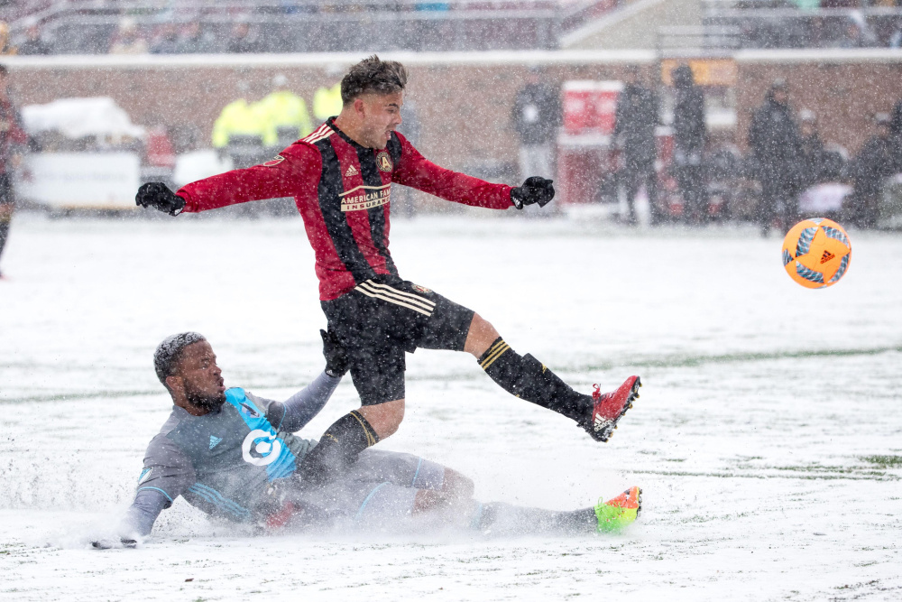 Óriási hóviharban, narancssárga színű labdával játszották le az Atlanta-Minnesota mérkőzést az MLS-ben. A hazaiak 6-1-es győzelmével zárult találkozót többször is félbe kellett szakítani, hogy a pályamunkások valamennyire letakarítsák a pályát, így legalább a felfestések láthatóvá váltak.