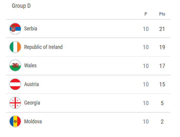 A szerbek hozták a kötelezőt, legyőzték a grúzokat, így megszerezték az első helyet, és kijutottak a világbajnokságra. A Wales-Írország meccs így igazi rangadó volt a második helyért: az írek idegenben is győztek, ezzel előztek és pótselejtezőt játszhatnak.
