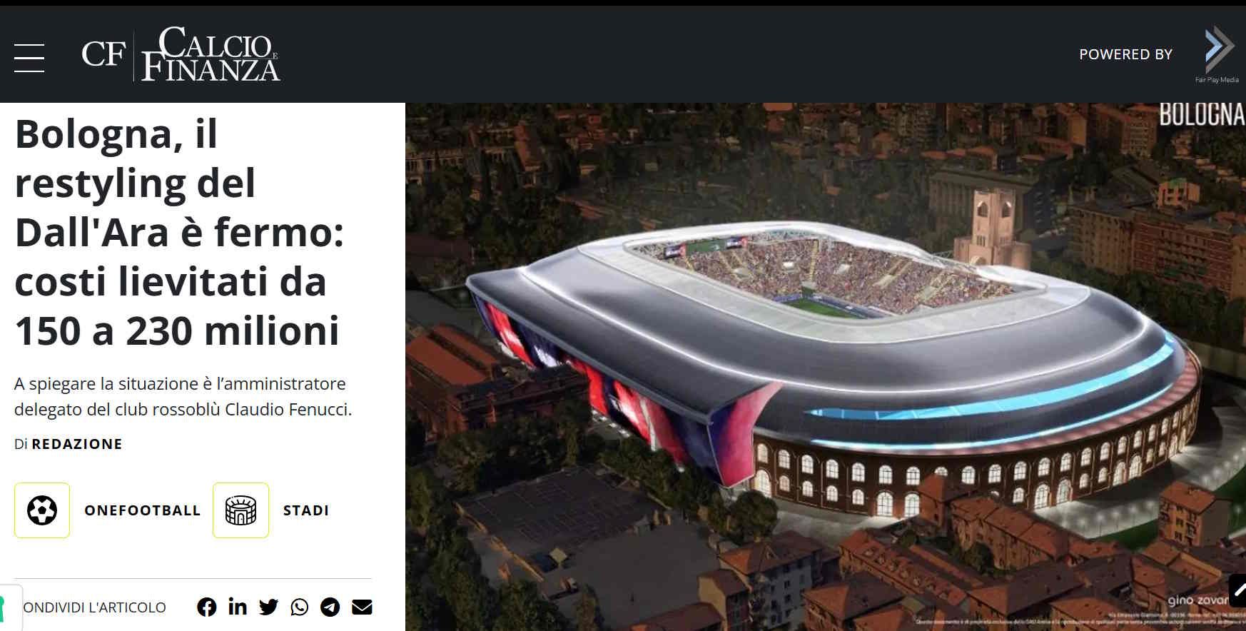 Bologna: A klub vezérigazgatója, Claudio Fenucci elismerte: jelenleg teljesen leállt a Renato Dall’Ara Stadion felújításának projektje. A klubvezető szerint a beruházás költségei a Covid óta 150 millió euróról 230 millióra nőttek, amit a Bologna önállóan nem tud finanszírozni. Fenucci hangsúlyozta, külső – városi vagy gazdasági – partnerek bevonása nélkül nem megvalósítható a fejlesztés. A stadion Euro 2032-es helyszínként is szóba került, ám az önkormányzat egyelőre kivár, mivel a pénzügyi és határidős kockázatok továbbra is jelentősek.