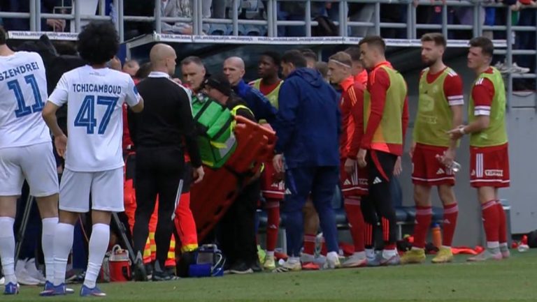 A félidő végéhez közeledve veszélyes szabadrúgáshoz jutott a Kisvárda a tizenhatos vonalának közeléből: Matanovic vállalta el a lövést, de tekerése a kapu mellé szállt.