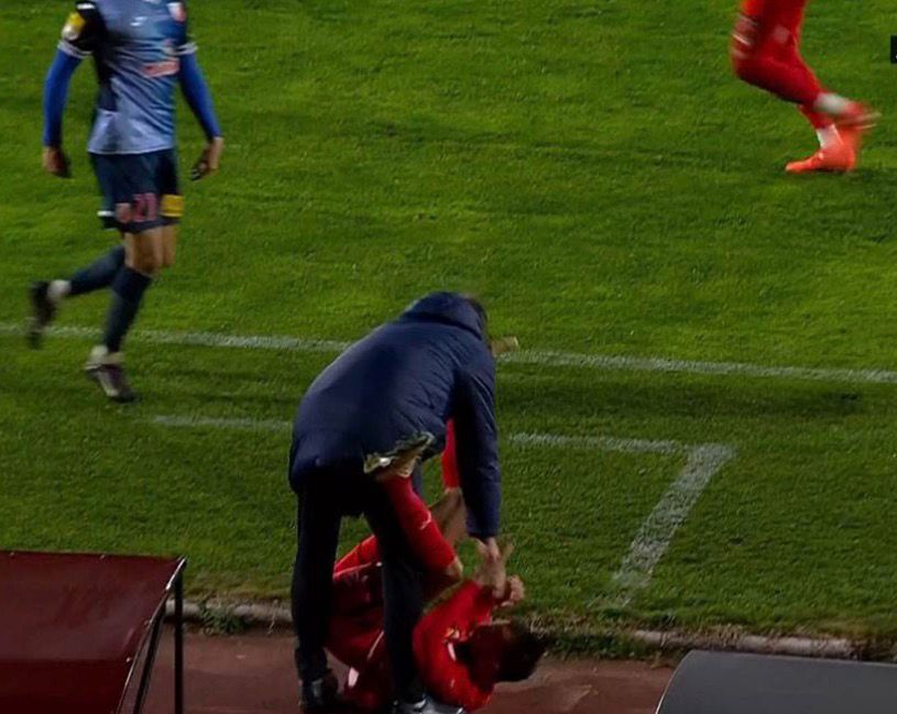 A 65. percben történt az eset, amikor egy szabad labdára a levegőben csapott össze két játékos, közvetlen az oldalvonal mellett. Az eset épp ott történt, ahol a Vojvodina edzője állt, aki a partvonal mellől instruálta csapatát. A párharc hevében a Radnički játékosa Miloš Ristić a levegőben stoplijával telibe találta Miroslav az edző fejét!