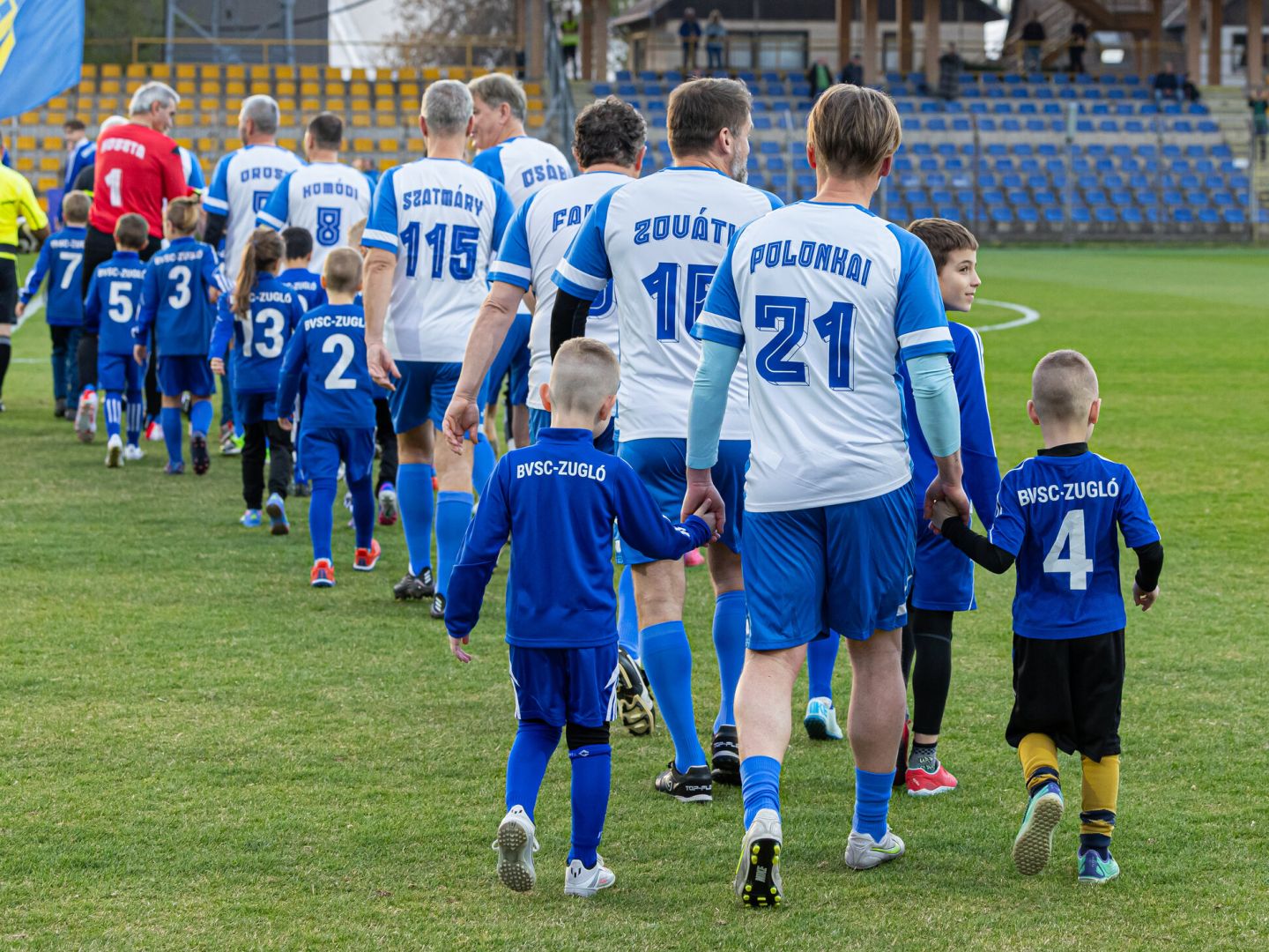 Több egykori játékos ma már apuka, fiatalabb generációt is magukkal hoztak a pályára, de a kezdőben az 1996-os csapat tagjai kaptak szerepet. A védelemben Csábi József, a klub egykori játékosa és edzője, valamint Szatmáry Kristóf, a klub elnöke szerepelt, aki a jubileumra emlékezve a 115-ös mezszámot viselte. Bognár György, a csapat akkori tízese most nem lépett pályára, de az oldalvonal mellől, fiai társaságában figyelte az eseményeket.
