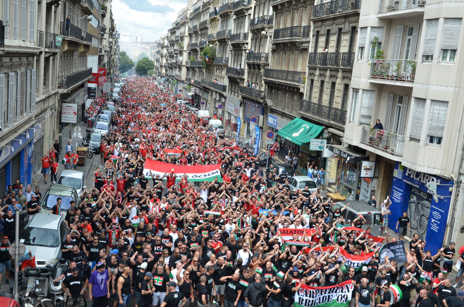 A tavaly nyári Eb-n a legemlékezetesebb vonulást Marseilleben produkálták a magyar szurkolók, ahol mintegy 40 ezren vonultak végig a városon óriási hangulatot teremtve: