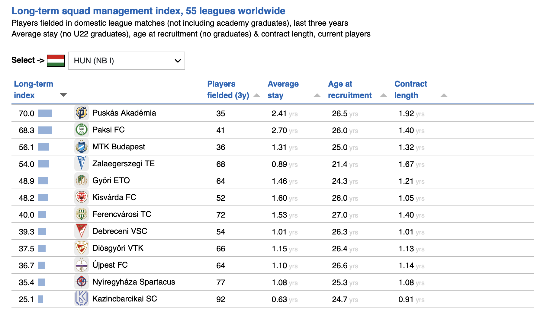 A leginkább hosszú távra tervezők között szerepel még a magyar élvonalban a Paksi FC és az MTK. Az NB I dobogósai közül a jelenlegi éllovas ETO FC az ötödik, az FTC a hetedik, a DVSC pedig a 8. a listán, amelyet alább részletesen is láthatsz. Ide kattintva pedig további ligákat is böngészhetsz.