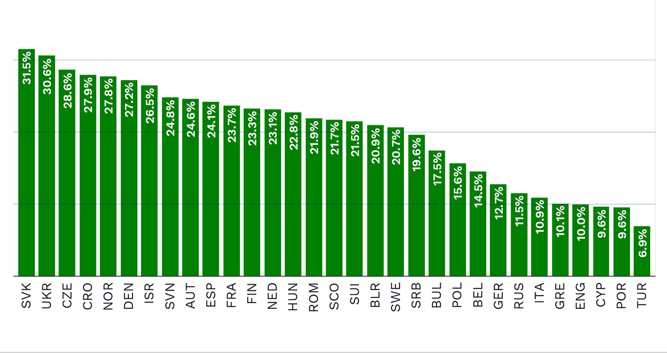 2. Csehország 30,7 %