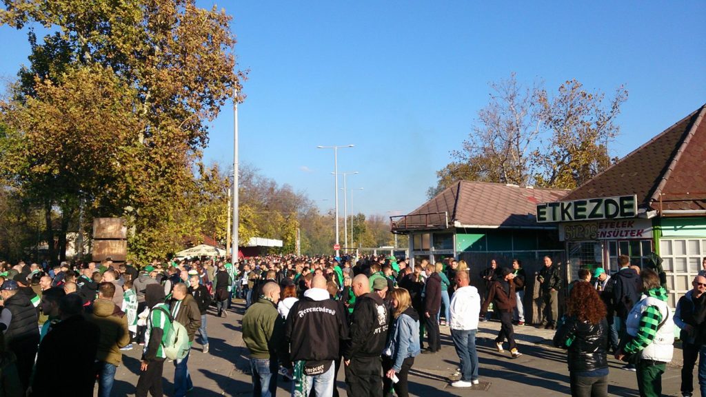 A Fradi-DVSC mérkőzésen visszatér a Fradi-tábor a Ferencváros stadionjába. A zöld-fehér drukkerek előtti kifeszített molinón az alábbi üzenet áll: