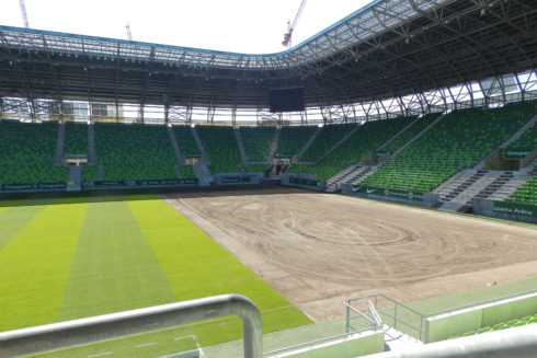 A hétfői koncertet követően négy napjuk lesz a stadionban dolgozó pályamestereknek arra, hogy az utolsó fordulóra, a Fradi-Újpest derbire ismét meccsre kész állapotba hozzák a gyepszőnyeget.