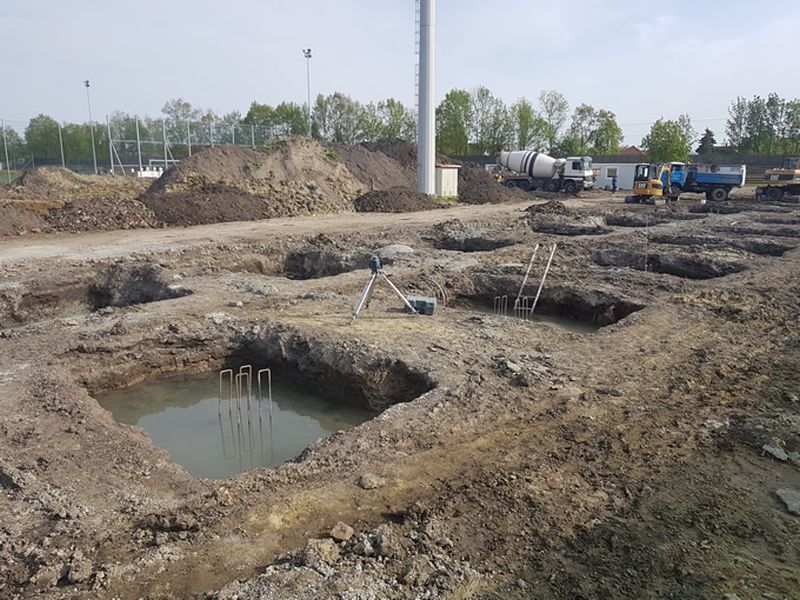 Jelenleg a mélyalapozási, cölöpözési munkálatok zajlanak, utóbbiból összesen 286 készül el. Az eredeti terveken módosítaniuk kellett a szakembereknek, ugyanis a munkálatok során előre nem várt nehézségekkel szembesültek. Kiderült ugyanis, hogy a talajvíz sokkal magasabban van, mint azt az előzetes feltárások mutatták, valamint a közművek kiváltásával is foglalkozniuk kellett az építőknek.