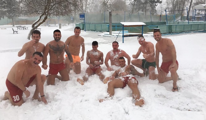 "Csapatunk túl van a felkészülés első hetén. A levezetés nem is telhetett volna jobban, mint egy alapos hófürdőzéssel" - írta a klub honlapja a mellékelt fotóhoz.
