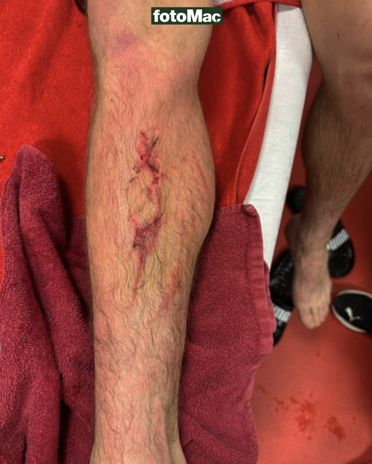 Az esetet összehasonlítják azzal, ahogyan Sallait intézte el az ellenfél labdarúgója (lásd a fenti videón). A magyar futballista egy brutális talpalás áldozata lett, a lenti fotón látszik, milyen állapotban volt emiatt a lába a találkozót követően. Ez a szabálytalanság még csak sárgát sem ért, míg Sallait egy vétlen fault miatt állították ki - jegyzik meg.