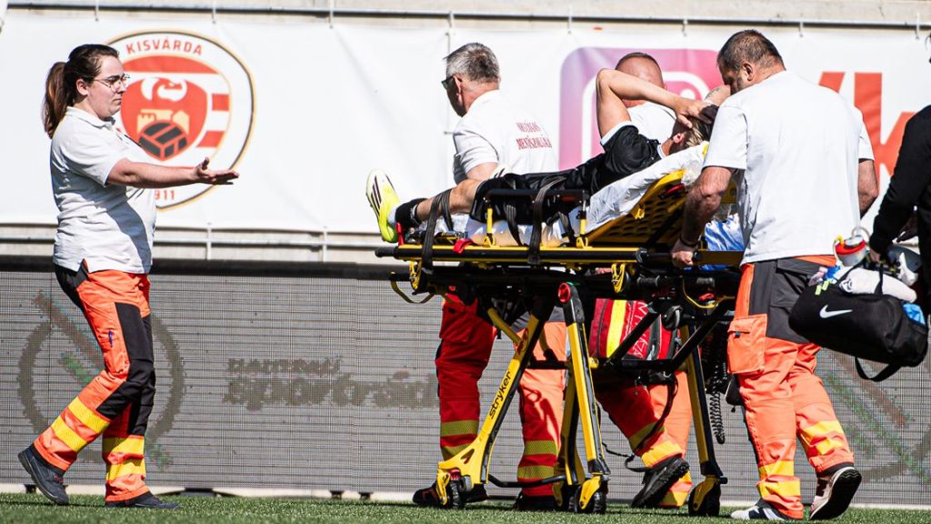 Súlyos sérülés árnyékolta be a szombat délutáni Kisvárda-DVTK (1-2) összecsapást a Fizz Liga 31. fordulójában. A találkozó első félidejének hajrájában egy felívelt labdáért vívott párharc után Demeter Milán és a hazaiak középpályása, Bogdan Melnyk csapott össze fejjel.