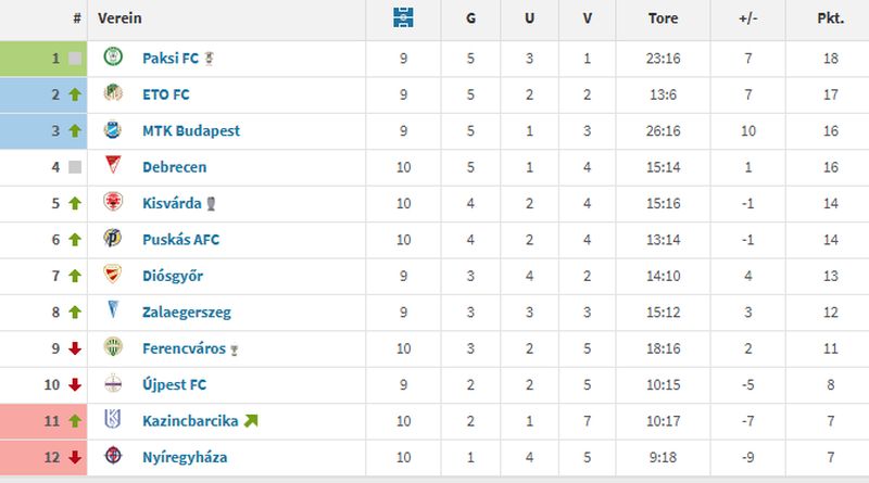 Ha az Újpest pótolja az elmaradt mérkőzését és pontot szerez, a Ferencváros akár a 10. helyre is visszacsúszhat ezen a táblázaton, ami a szezon ezen szakaszában már nem pusztán átmeneti hullámvölgyet mutat, hanem komoly problémát jelez.