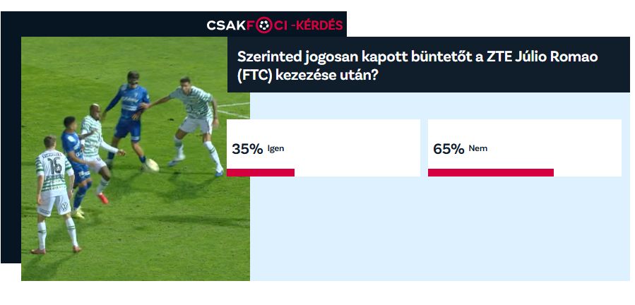 A vitatott 11-es kapcsán a Csakfoci megkérdezte olvasóit, szerintük jogosan kapta-e a 11-est a Zalaegerszeg? A válaszok alapján elég egyértelműnek tűnik a voksolók álláspontja: a szavazatok 65 százaléka szerint nem kellett volna Káprálynak befújnia a büntetőt és csak 35 százalék látta indokoltnak az ítéletet.