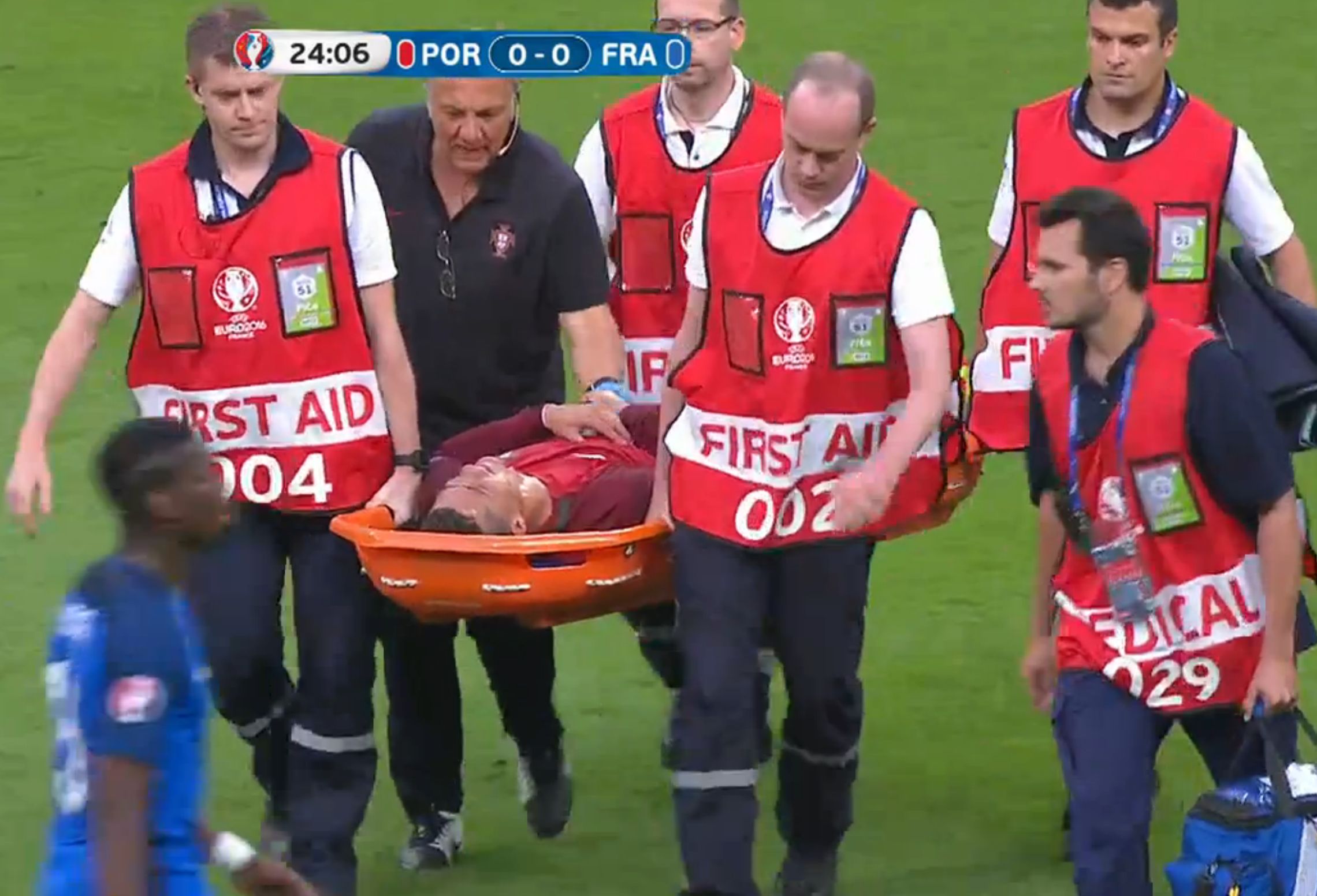 A portugálok csapatkapitánya az első negyedóra végén esett át egy ápoláson, Payet kemény belépőjét követően, de néhány percnyi ápolás után visszatért a pályára.