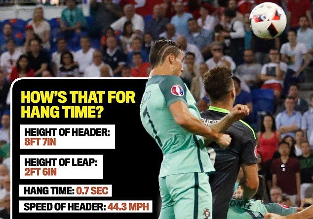 A brit Daily Mail számolgatott és nem akármilyen adatsort közölt Cristiano Ronaldo, a Wales elleni Eb-elődöntőn (2-0) szerzett vezető fejesgóljáról. A portugál 261 centiméter magasról fejelte, ehhez nagyjából 76 centiméteres súlypontemelkedést mutatott be a csillag. CR 0,7 másodpercig tartózkodott a levegőben és 71 kilométer per órás sebességgel vágódott a labda a léc alá.