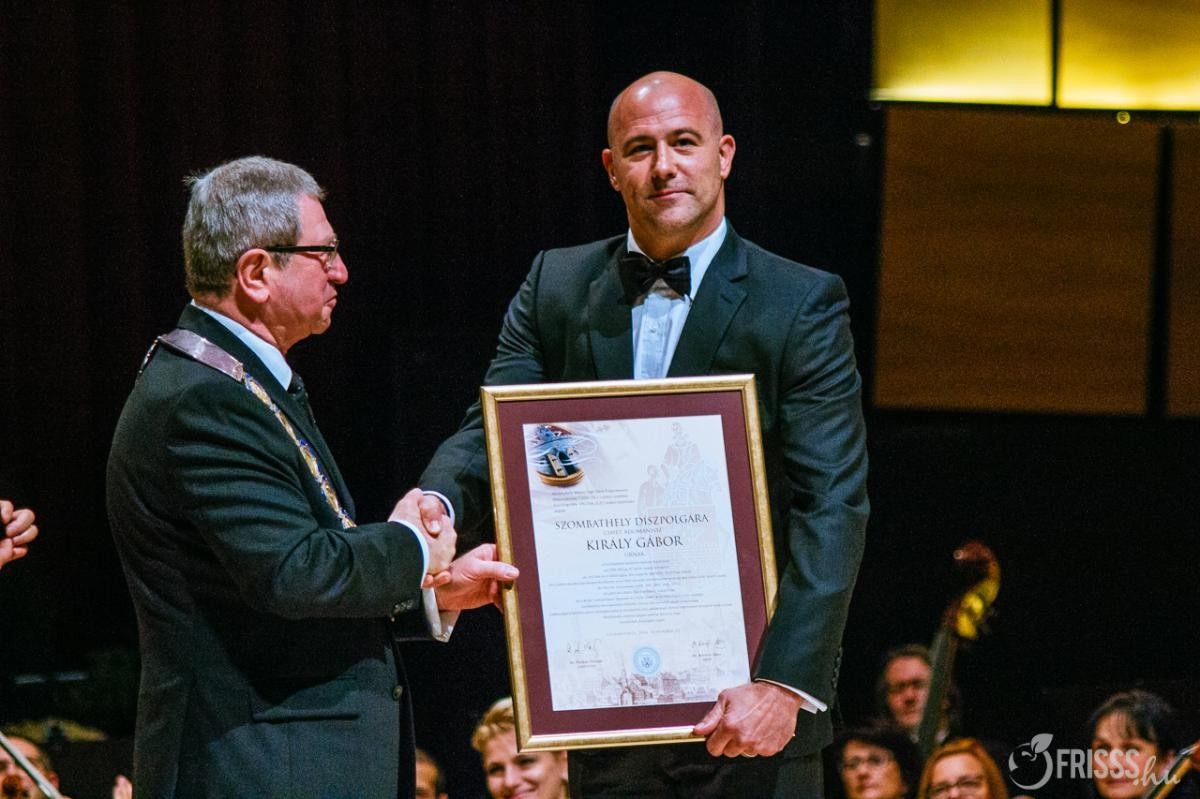 A 40 éves, 107-szeres válogatott Király Gábor szombaton, a Szent Márton napi díjátadó gálán vette át szülővárosa kitüntetését.