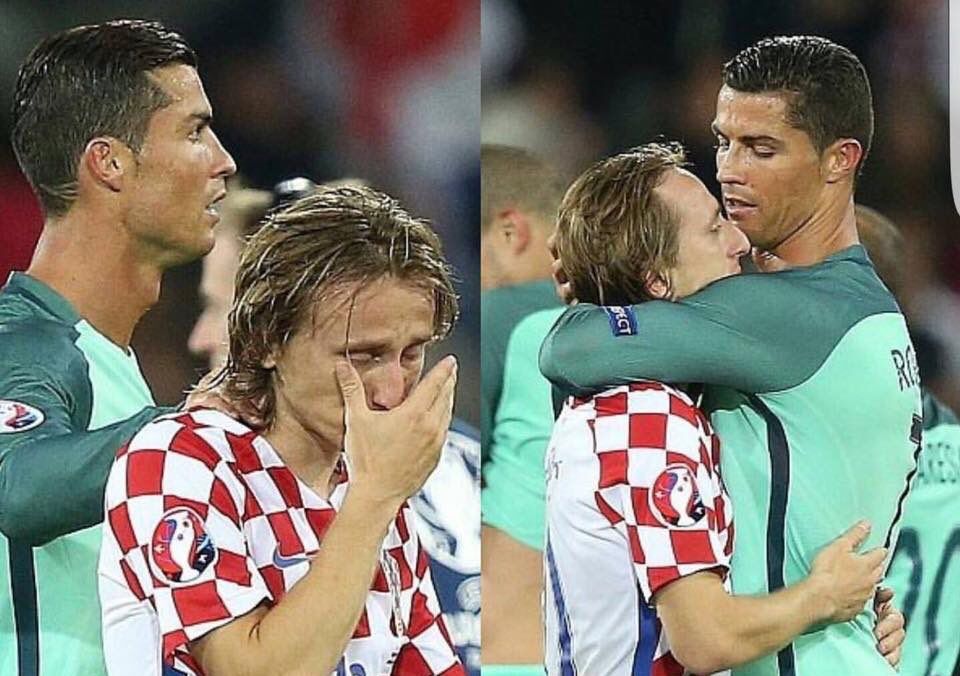 Luka Modric elsírta magát, miután Horvátország egy 117. percben kapott góllal kiesett Portugália ellen az Európa-bajnokságról. Madridi klubtársa, Cristiano Ronaldo vigasztalta a középpályást.