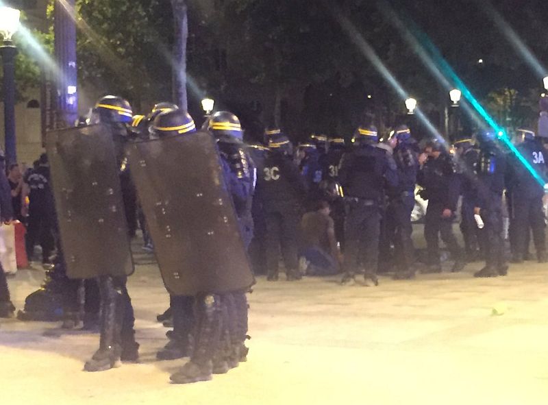 A dühös szurkolók az Eiffel-torony környékén szemeteskukákat, egy robogót, s egy autót is felgyújtottak, a rendőröket pedig megdobálták. A hatóság vízágyú és könnygáz bevetésével fékezte meg a többségében fiatalokból álló randalírozókat.
